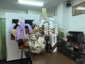 法人設立のお祝いで頂いた綺麗なお花で事務所内いい香りでみんな毎日癒されています(^^)/