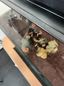 そしてこちら事務所で育てているオスカー🐟ですが、人が近づくと餌がもらえると分かっているのか