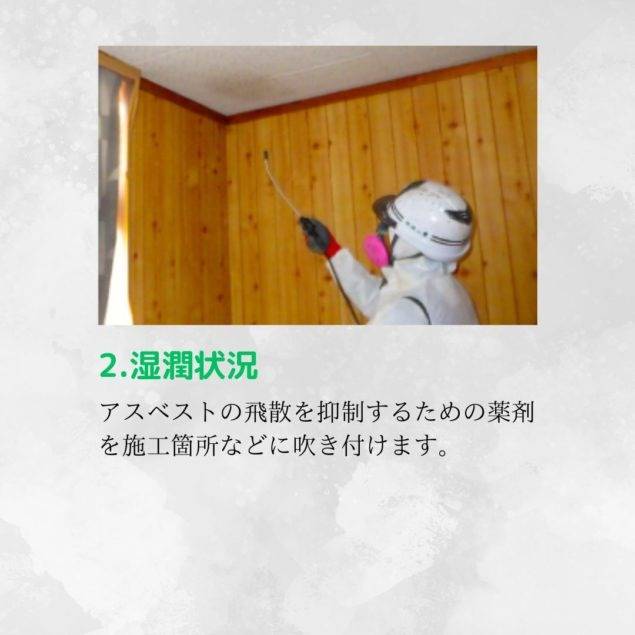 アスベストを湿らせることによって