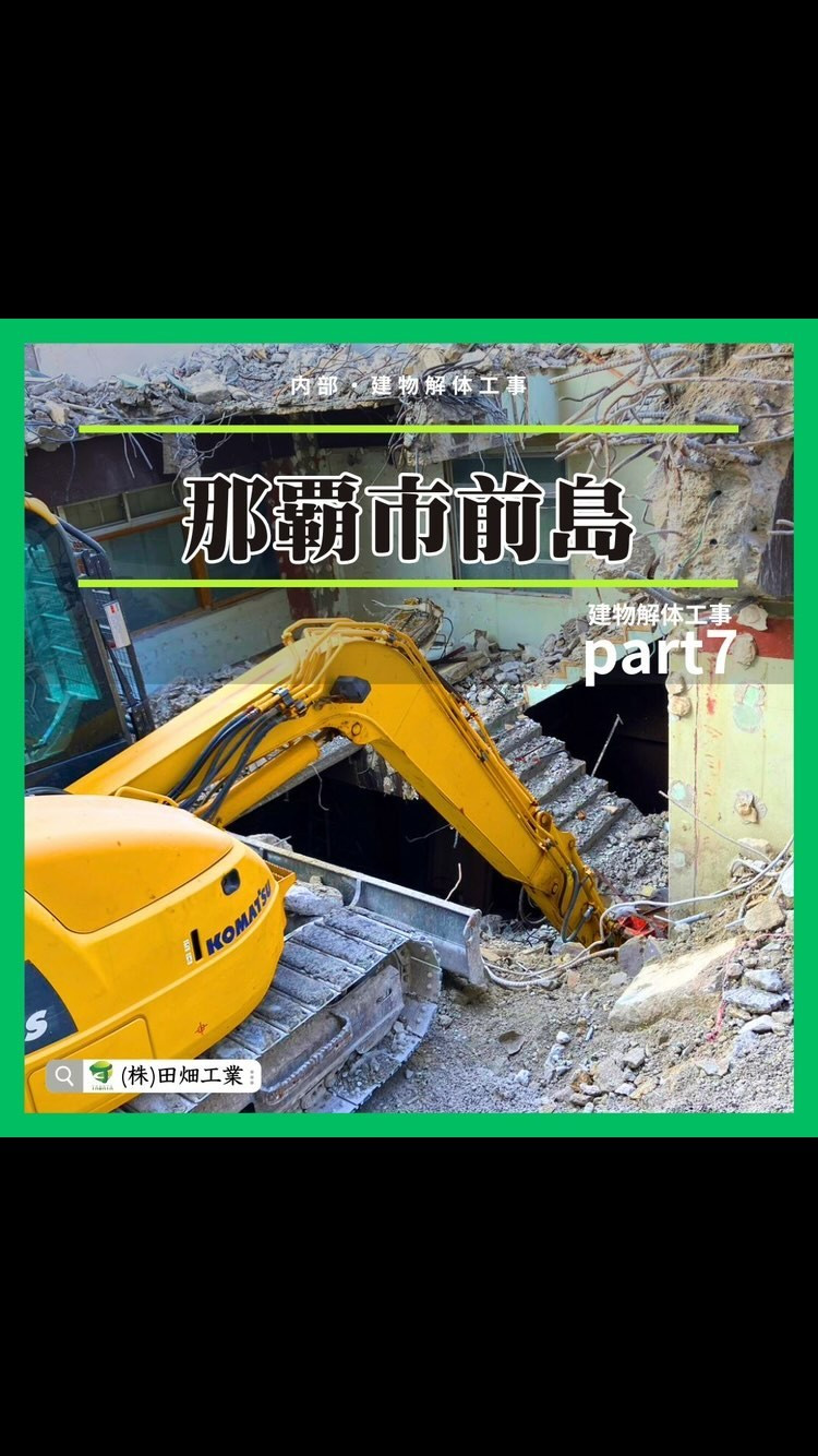 ・ ・おはようございます🌞【那覇市前島店舗解体工事】part7アスベスト除去工事、内部解体工事、そして現在、建物解体工事と進んでいます👷✊この建物は階上解体と言って、大型のクレーンで重機をビルの屋上へ…