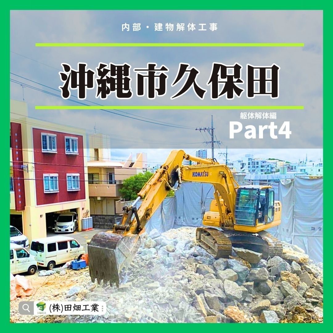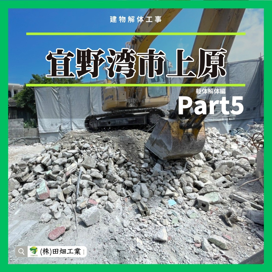 ・・・・・・・ おはようございます 【宜野湾市上原建物解体工事】 今日はpart5です。 今日でそろそろ1ヶ月が 経とうとしていますが、、、 アスベスト除去工事から入り、 内部解体工事、躯体解…