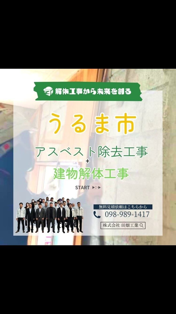 ・ ・◇◆◇本日の工事現場情報◇◆◇沖縄市胡屋に㈱田畑工業の看板発見‼️・アスベスト調査・アスベスト除去工事・建物解体工事を検討中の方はぜひご連絡ください。◇◆◇解体工事から未来を創る◇◆◇おはようございま…