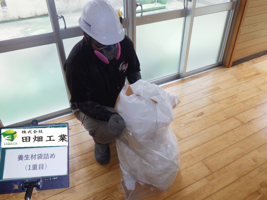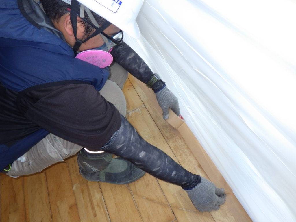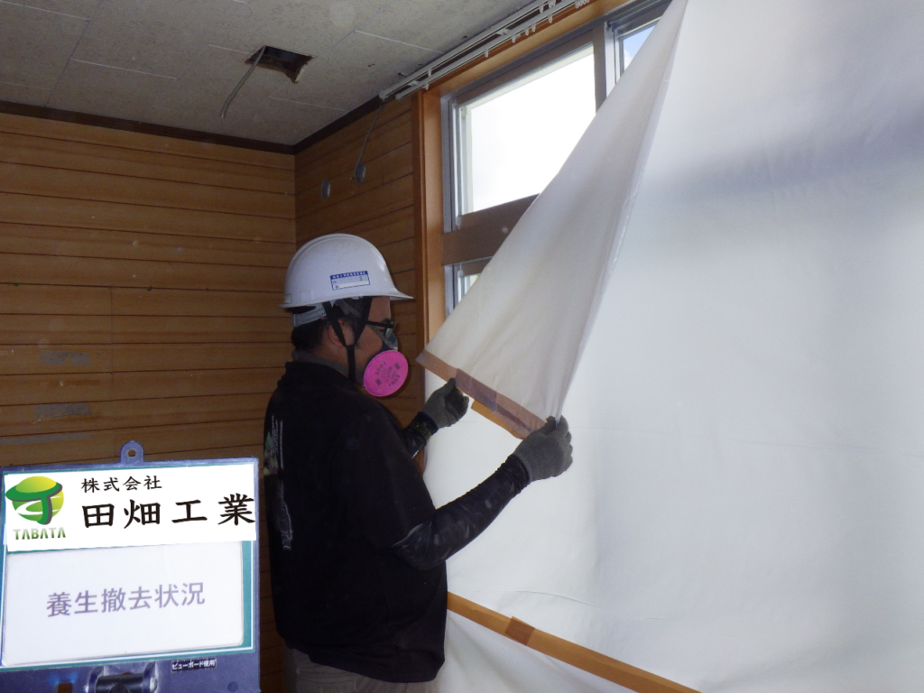 北谷町砂辺T様邸解体工事 2022/08/03 施工前 養生状況 養生完了 湿潤状況 撤去状況 清掃状況・拭き取り 撤去完了 含有建材袋詰め一重目・二重目 養生撤去状況 養生材袋詰め一重目・二重目 最終清掃 施工完了