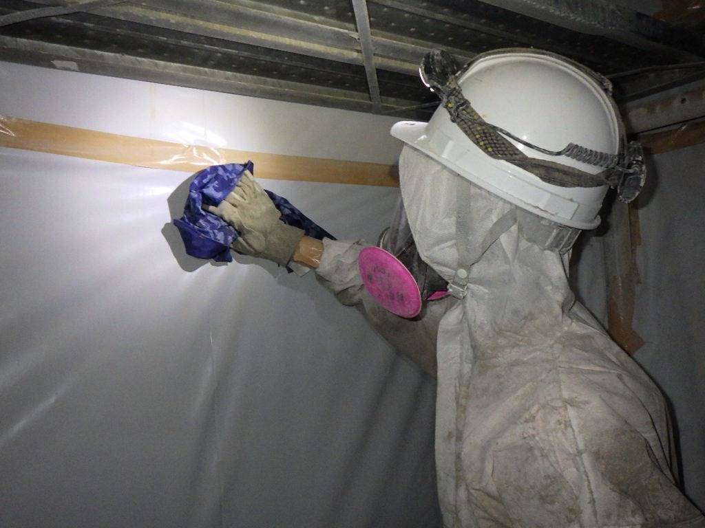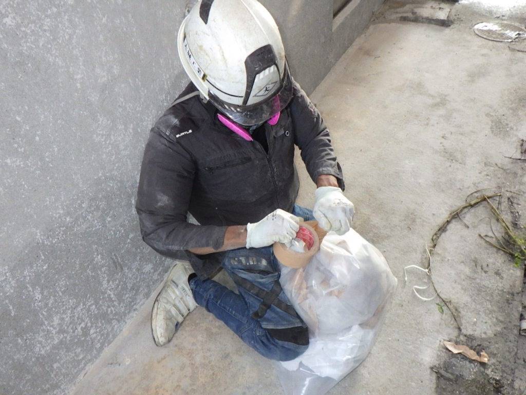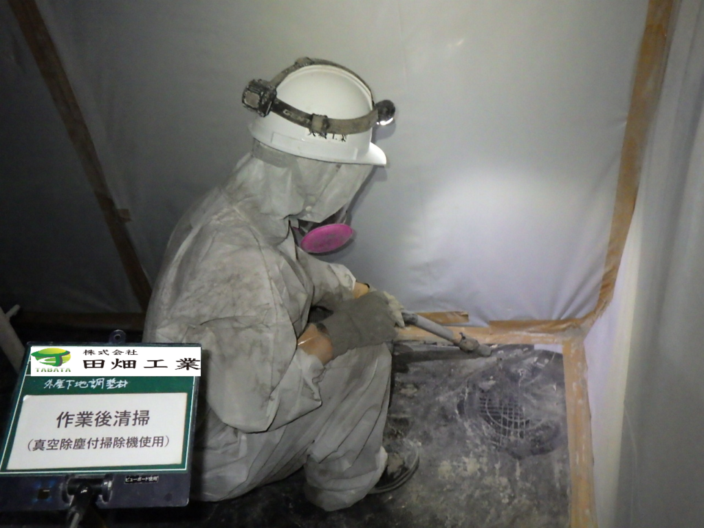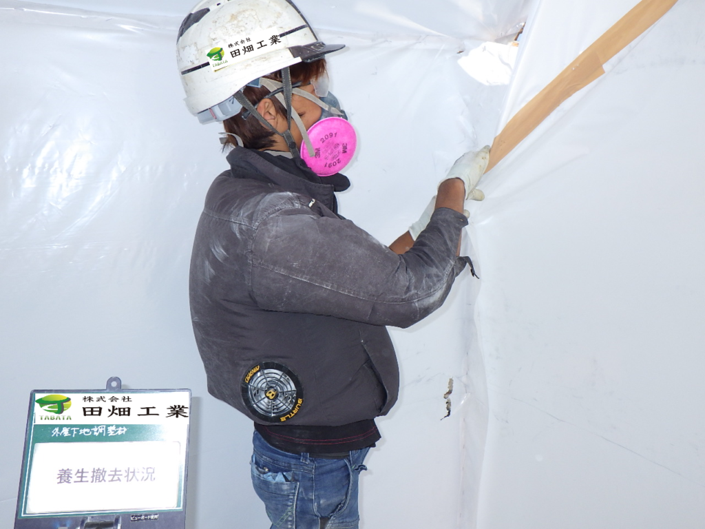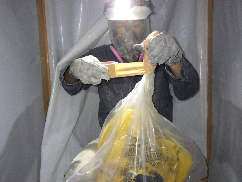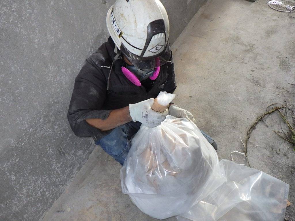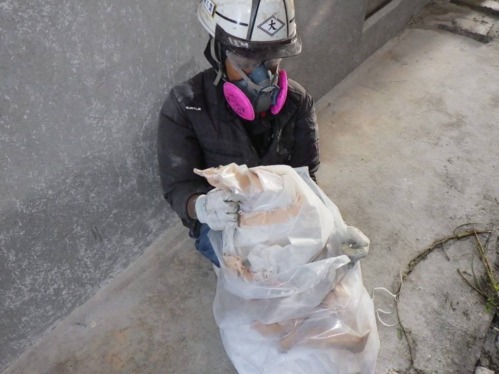うるま市石川H様邸解体工事 2022/10/05 施工前 作業前清掃 養生完了 (開口部) 養生完了 (全面隔離) 湿潤状況 研磨状況 作業後清掃 作業後清掃 (拭き取り) 含有建材袋詰め1巡目 含有建材袋詰め2巡目 撤去完了・目視確認 散布状況 養生撤去状況 養生材袋詰め1重目 養生材袋詰め2巡目 最終清掃 施工完了