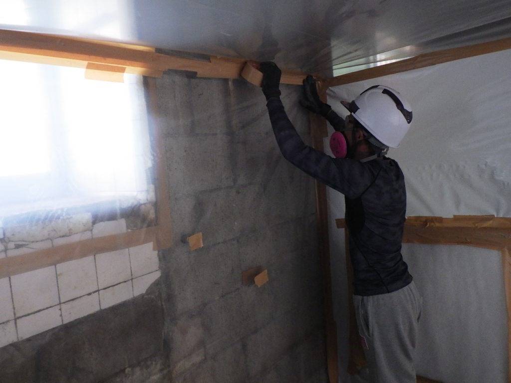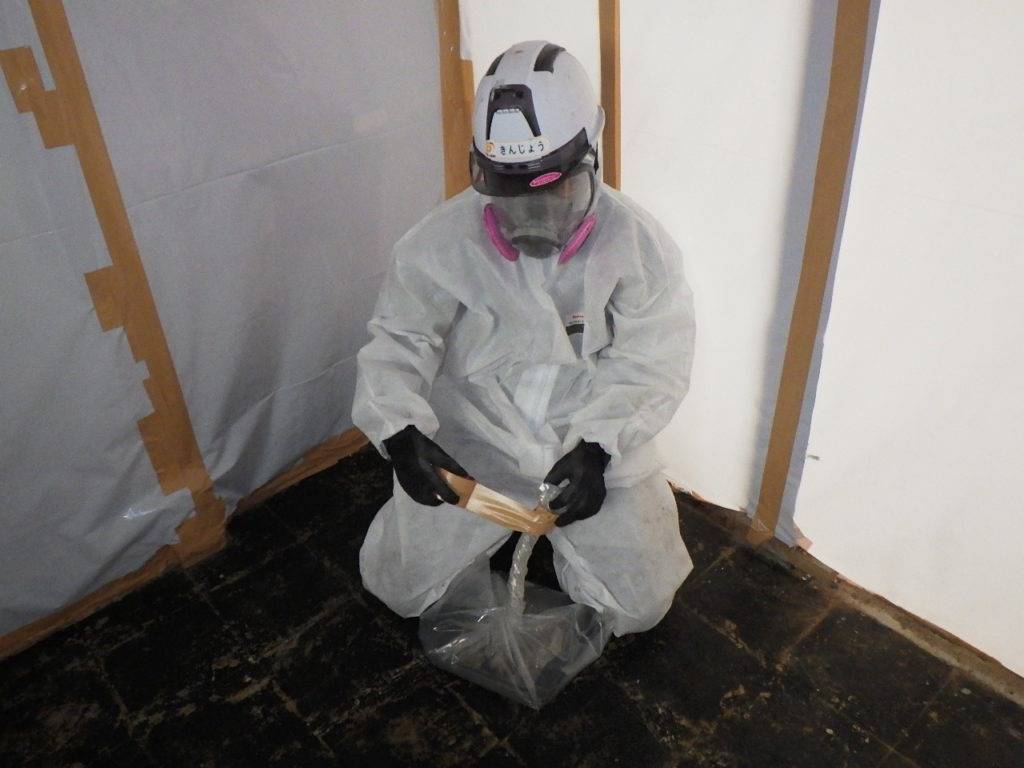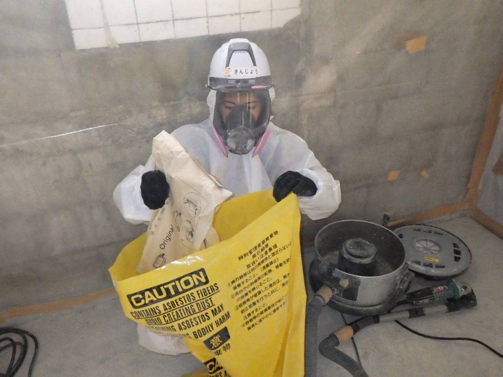 那覇市上間Y様邸解体工事 2022/11/10 施工前 作業前清掃 養生状況、養生完了 (開口部) 養生状況、養生完了 (全面隔離) 湿潤状況、撤去状況 含有建材袋詰め1重目 (透明) 含有建材袋詰め2重目 (透明) 研磨状況 ライナックス撤去状況 作業後清掃 作業後清掃拭き取り 含有建材袋詰め1重目 (黄色) 含有建材2重目透明 (管理型) 撤去完了・目視確認 散布状況 養生撤去状況 養生材袋詰め1重目 養生材袋詰め2重目 最終清掃 施工完了