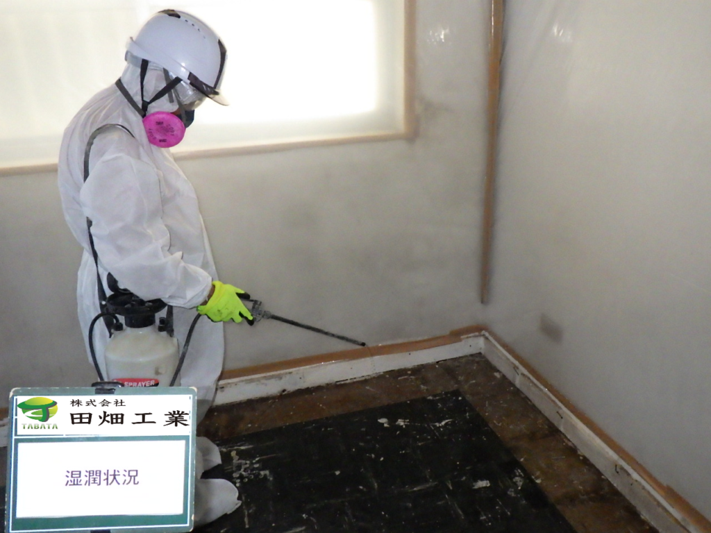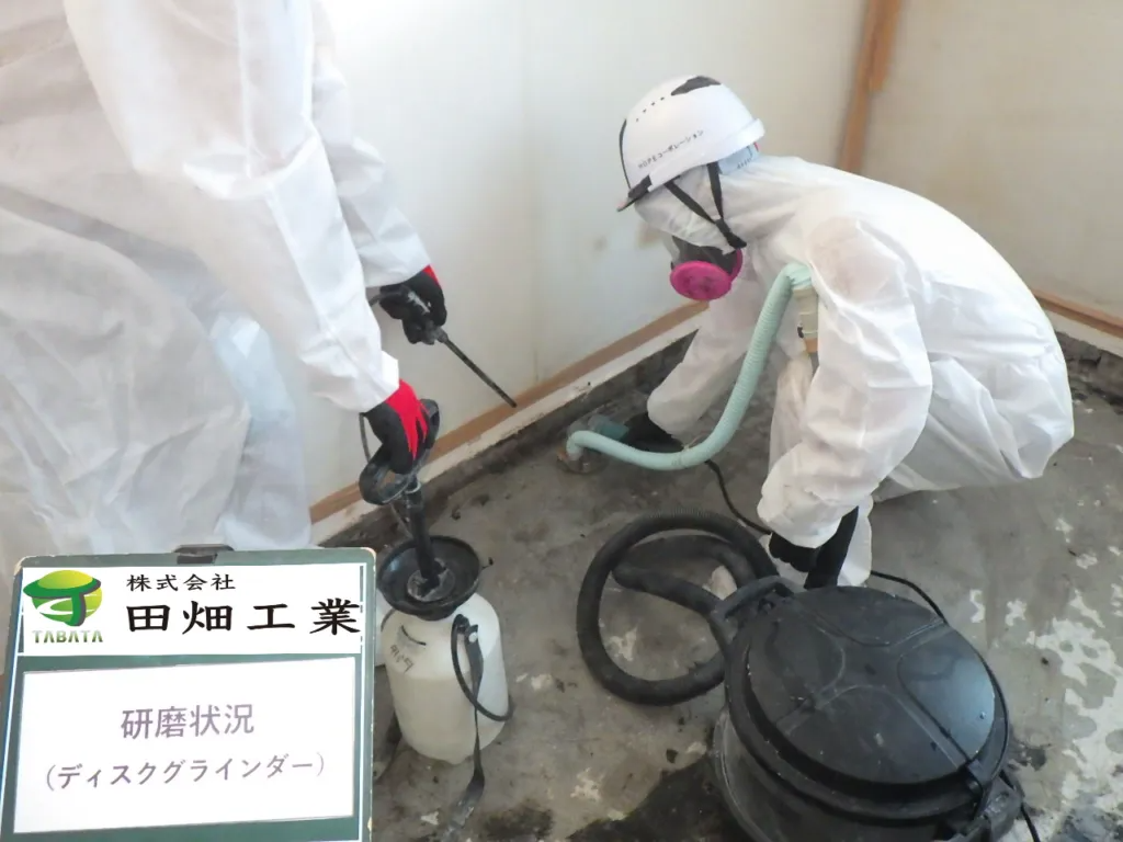那覇市内アパート解体工事 (床材:Pタイル撤去) 2023/03/01 施工前 養生状況 養生完了 湿潤状況 撤去状況 含有建材袋詰め一重目・二重目 ディスクグラインダー研磨状況 ライナックス研磨状況 清掃状況・拭き取り 含有建材袋詰め一重目・二重目 散布状況 養生撤去状況 養生材袋詰め一重目・二重目 最終清掃 施工完了
