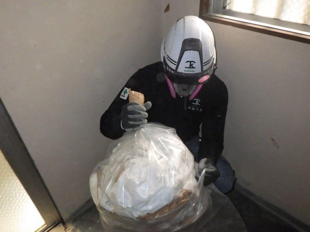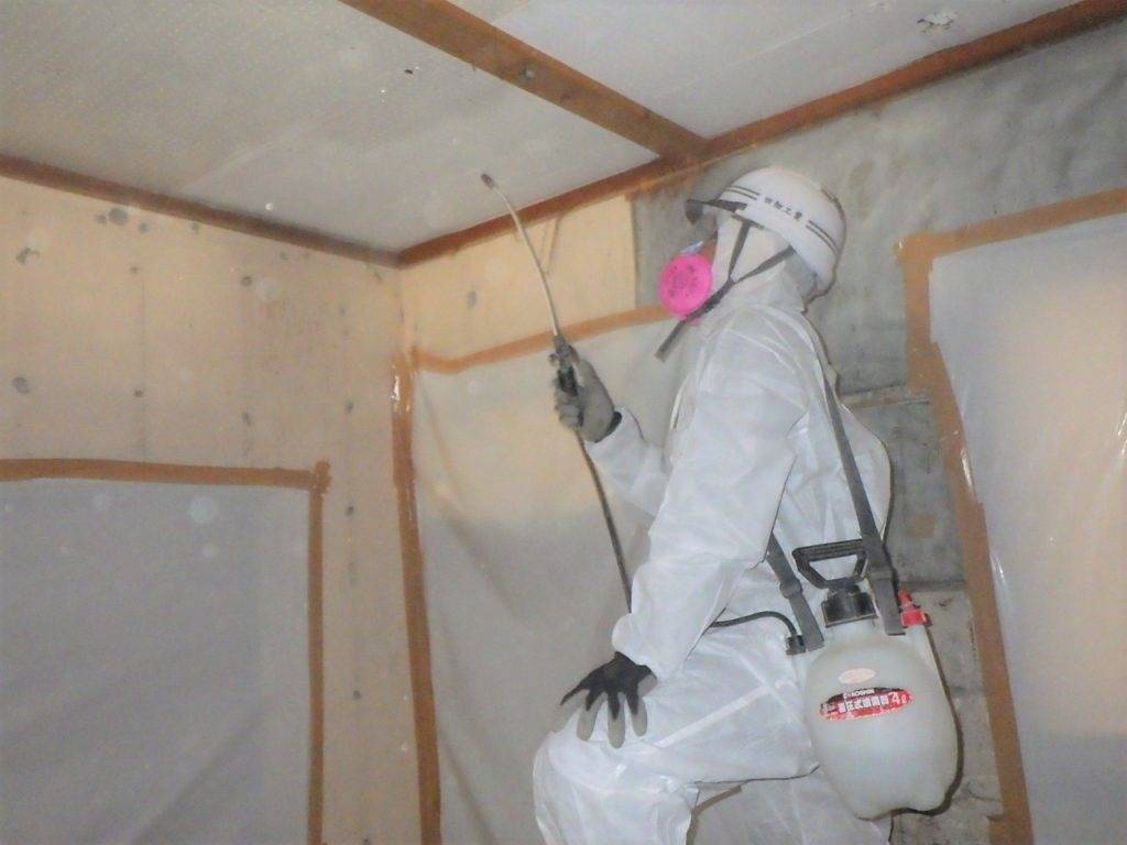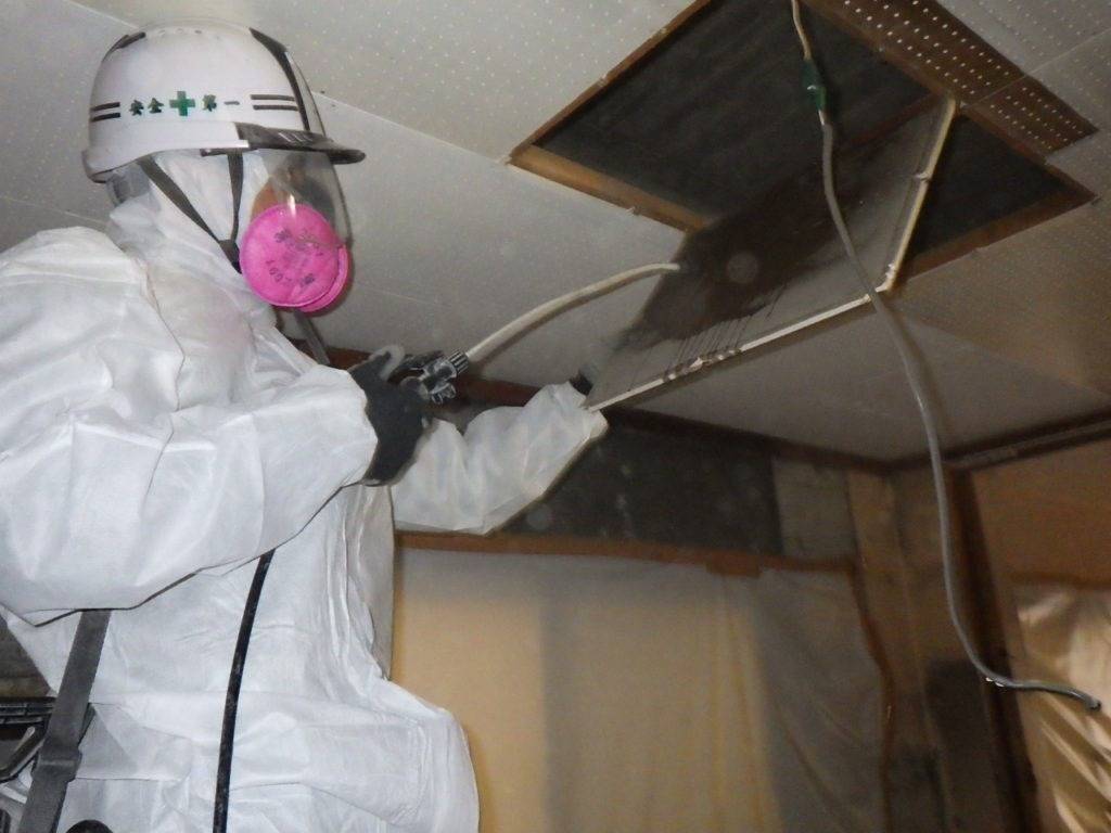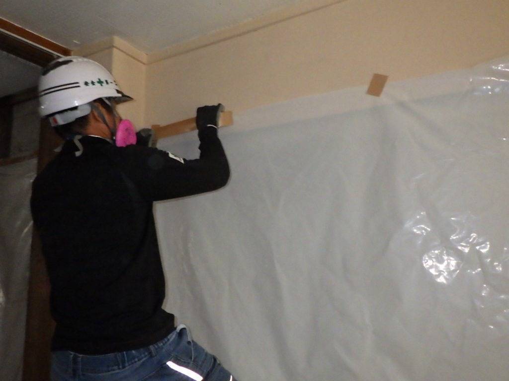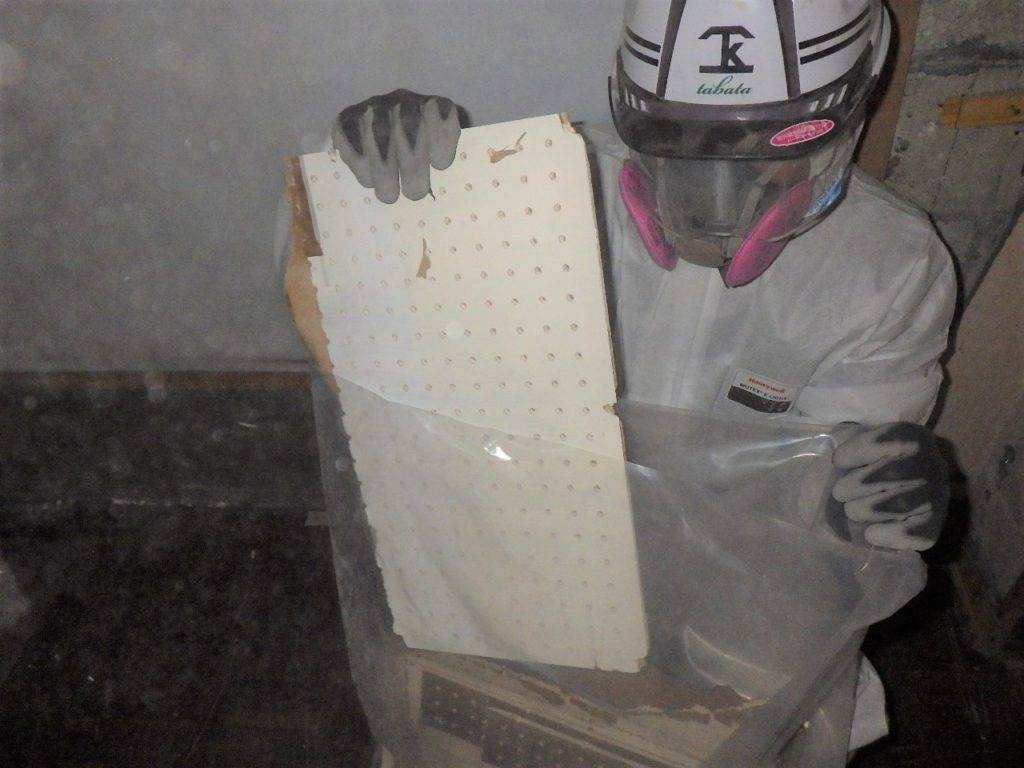 那覇市久茂地S様邸解体工事 (天井材:フレキシブルボード撤去) 2023/03/01 施工前 養生状況 養生完了 湿潤状況 撤去状況 清掃状況・拭き取り 含有建材袋詰め一重目・二重目 養生撤去状況 養生材袋詰め一重目・二重目 最終清掃 施工完了