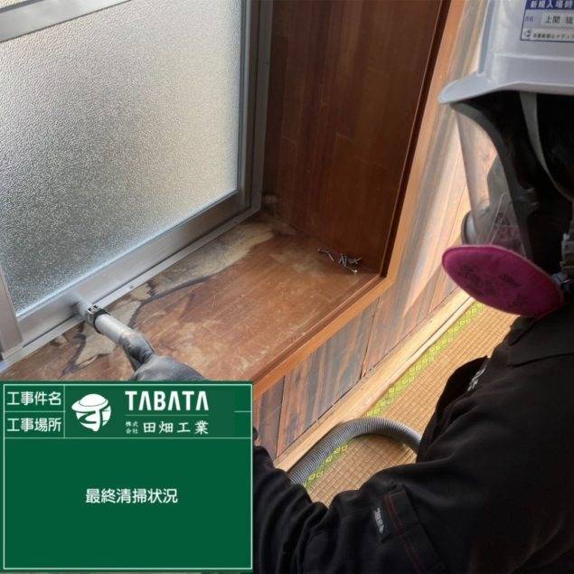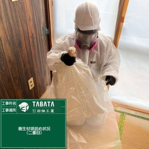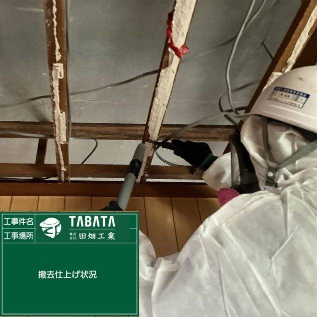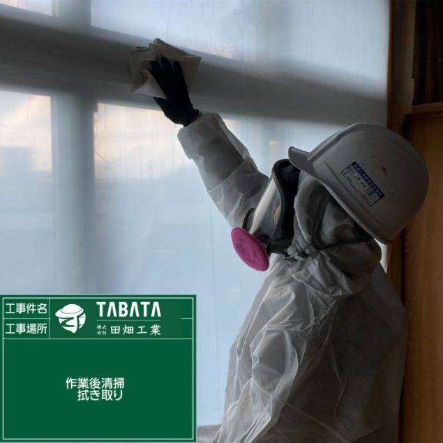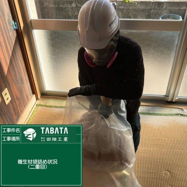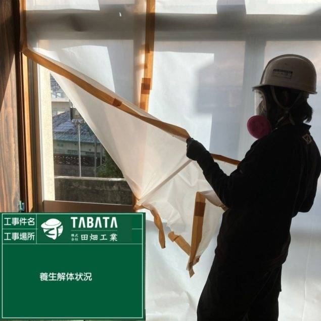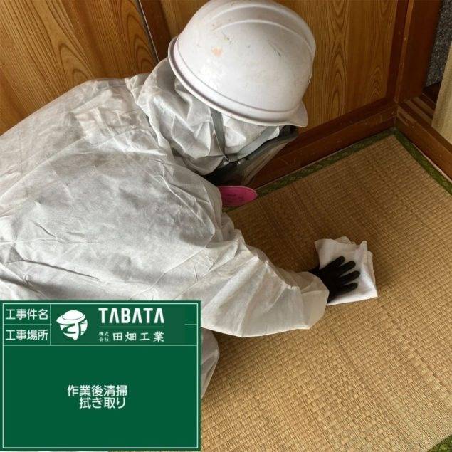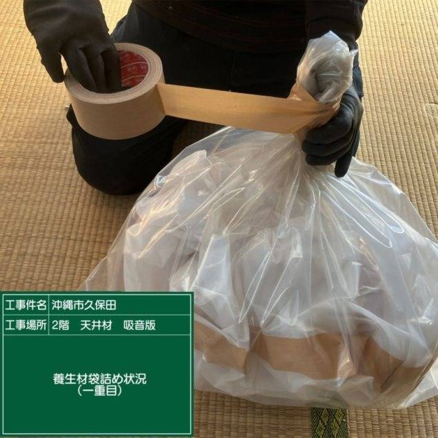 沖縄市久保田解体工事 2023/03/08 沖縄市久保田解体工事 (天井材・吸音板) 施工前 作業前清掃 養生状況 養生完了 湿潤状況 撤去状況 撤去仕上げ状況 作業後清掃 作業後拭き取り 石綿作業主任者目視確認 含有建材袋詰め 含有建材袋詰め2重 養生解体 養生袋詰め 最終清掃 施工完了