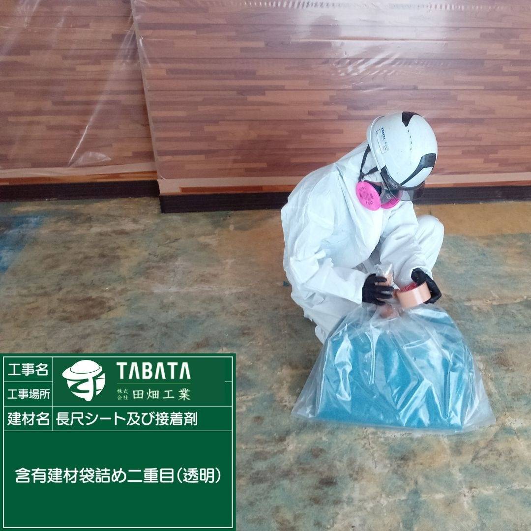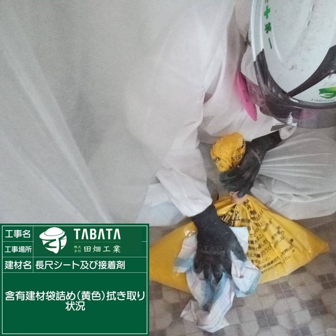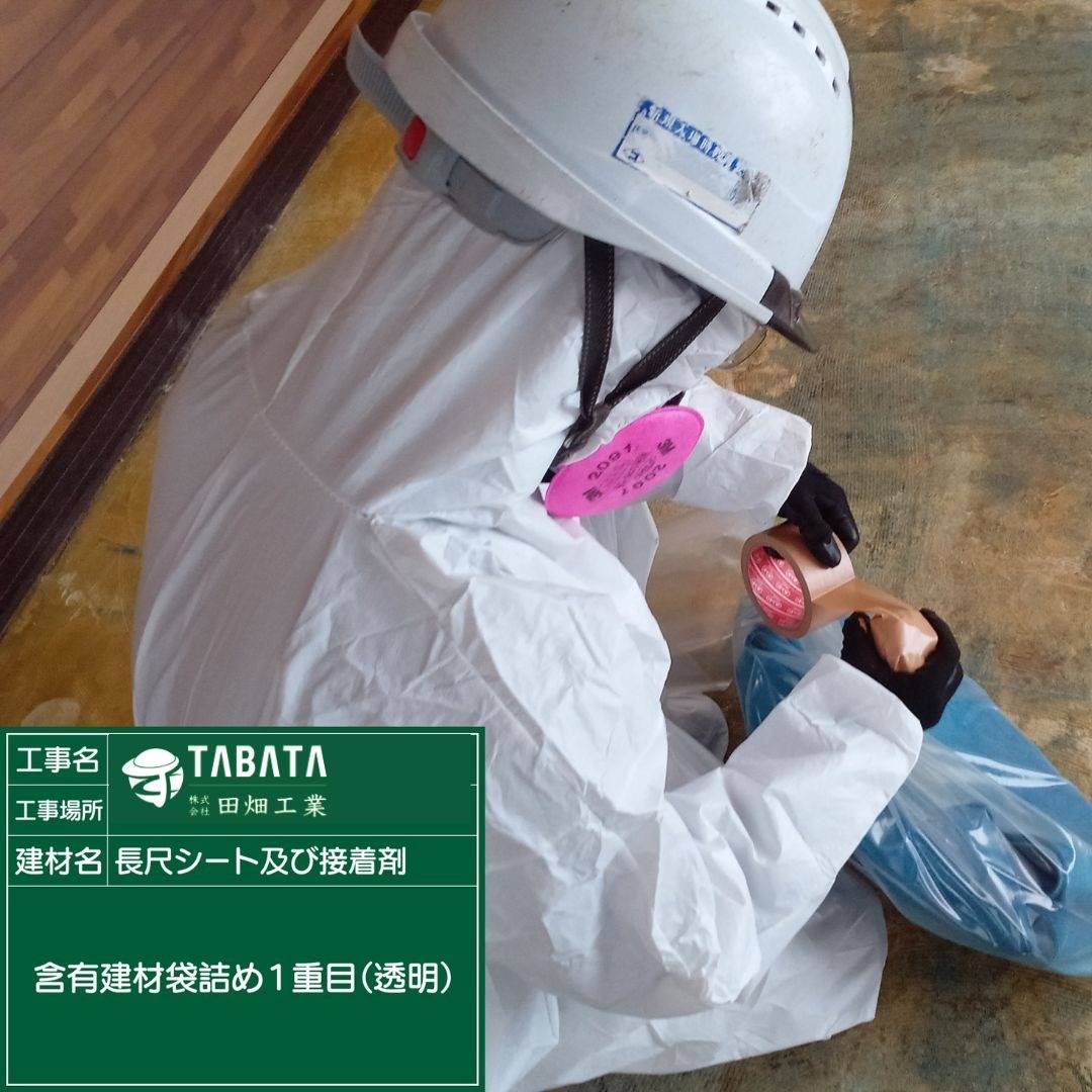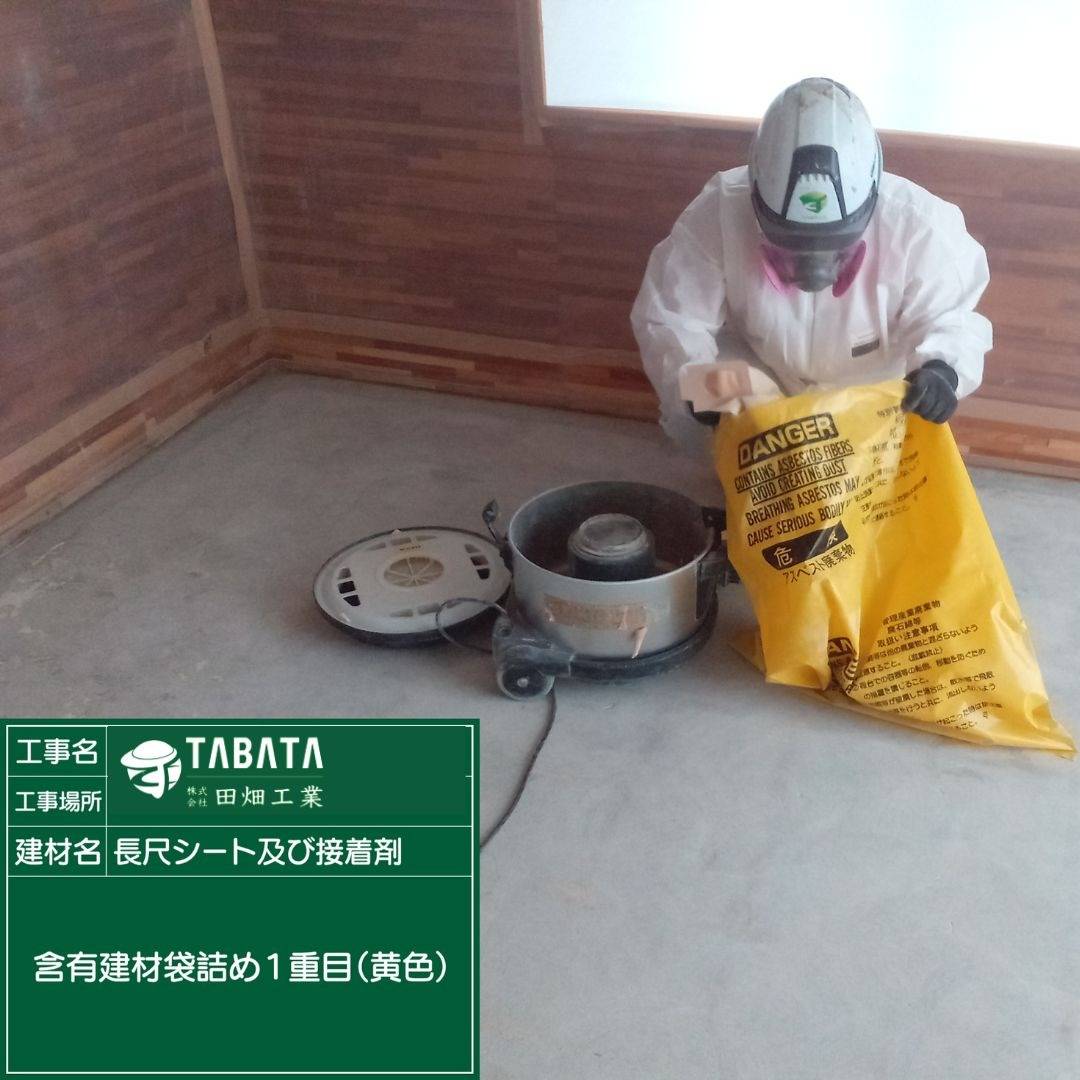 S様邸解体工事 2023/04/18 S様邸解体工事 長尺シート及び接着剤 作業前清掃 養生状況(開口部) 養生完了(開口部) 養生状況(全面隔離) 養生完了(全面隔離) セキュリティールーム設置状況 エアシャワー設置状況 差圧計測定状況 湿潤状況 撤去状況 含有建材袋詰め1重(透明) 含有建材袋詰め2重(透明) ディスクグラインダー撤去状況 ライナックス撤去状況 デジタル粉塵計測定状況 清掃状況 清掃状況(拭き取り) 含有建材袋詰め1重目(黄色) 含有建材袋詰め(黄色)拭き取り状況 含有建材袋詰め2重目透明(管理型) 撤去完了 散布状況 養生撤去状況 養生袋詰め 養生袋詰め(2重目) 最終清掃 施工完了